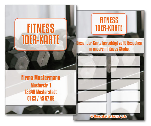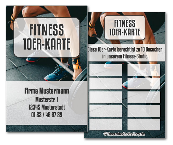 10er-Karten Fitness-Studio INDIVIDUELL inklusive Firmenaufdruck und Wunschtext (Design 1)